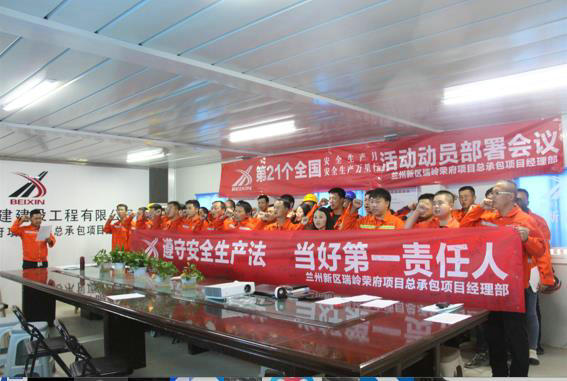 生命與生產(chǎn)同行,安全與安心相伴。為筑牢安全生產(chǎn)防線,強(qiáng)化底線思維和紅線意識(shí),5月31日,蘭州新區(qū)項(xiàng)目部舉行了以“遵守安全生產(chǎn)法,當(dāng)好第一責(zé)任人”為主題的安全生產(chǎn)月活動(dòng)啟動(dòng)儀式,項(xiàng)目全體職工及勞務(wù)班組參加。
