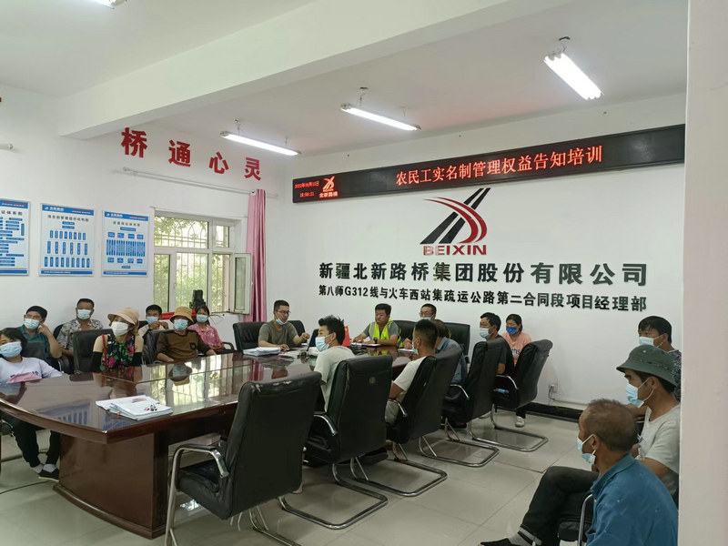 近日,新疆北新順通路橋公司 G312項目部組織項目管理人員及進(jìn)場勞務(wù)工開展“農(nóng)民工實(shí)名制管理權(quán)益告知培訓(xùn)”,內(nèi)容包括“實(shí)名制管理的目的及意義”“農(nóng)民工維權(quán)告知”“農(nóng)民工工資支付保障條例”