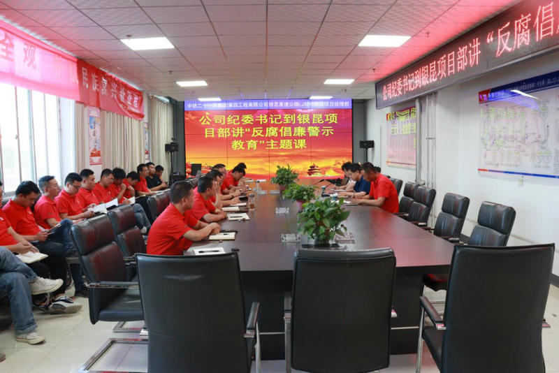 為堅(jiān)決落實(shí)好黨中央、集團(tuán)公司黨委、公司黨委對(duì)“反腐倡廉”工作要求。6月15日,中鐵二十一局四公司紀(jì)委書記李興軍到銀昆高速公路LJ12-2標(biāo)項(xiàng)目講授“反腐倡廉宣傳教育”主題課,總部紀(jì)檢工作部部長(zhǎng)陪同,項(xiàng)目部、工區(qū)、實(shí)驗(yàn)室及拌合站全體員工參加。