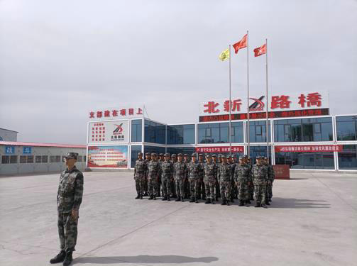 “聽(tīng)黨指揮,能打勝仗,作風(fēng)優(yōu)良”,伴隨著節(jié)奏整齊劃一列隊(duì),嘹亮的口號(hào)聲響徹駐地。6月13日,北新路橋集團(tuán)西安分公司蘭州新區(qū)項(xiàng)目民兵連統(tǒng)一著裝、精神抖擻列隊(duì)操練,接受十一師“兵”字號(hào)工程調(diào)度檢閱。