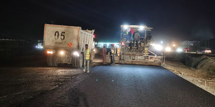 圖為挑燈夜戰(zhàn)進(jìn)行主線路面瀝青攤鋪施工三是強(qiáng)化協(xié)同配合的聯(lián)動(dòng)機(jī)制。一直以來(lái),該項(xiàng)目部將隊(duì)伍建設(shè)作為凝心聚力的重要舉措。項(xiàng)目領(lǐng)導(dǎo)結(jié)合海外實(shí)際,積極探索員工屬地發(fā)展培養(yǎng)模式。在思想上,培養(yǎng)員工扎根海外思想意識(shí);在工作上,通過(guò)自主提升和幫帶傳教方式,不斷提升員工海外工作業(yè)務(wù)能力;在生活上,給予員工關(guān)切和幫助,通過(guò)面對(duì)面地交流談心,緩解疏導(dǎo)壓力,解決員工后顧之憂,真正打造一支海外屬地化鐵軍團(tuán)隊(duì)。從領(lǐng)導(dǎo)班子成員到普通職工群眾,項(xiàng)目上下形成一種團(tuán)結(jié)協(xié)作的良好氛圍?,F(xiàn)場(chǎng)施工、材料供應(yīng)、后勤保障、資金保證......各部室相互配合,形成統(tǒng)一聯(lián)動(dòng)的工作機(jī)制,助推項(xiàng)目建設(shè)取得新進(jìn)展。