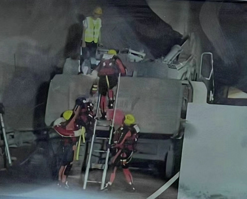 本次演練模擬在雨季施工,歡樂(lè)谷站施工通道突遇溶腔,作業(yè)掌子面出現(xiàn)裂隙水,并瞬間增大,水流渾濁,涌水倒灌,導(dǎo)致作業(yè)車(chē)具熄火、人員受困,面對(duì)隧道內(nèi)突發(fā)險(xiǎn)情,現(xiàn)場(chǎng)負(fù)責(zé)人立即向當(dāng)班領(lǐng)導(dǎo)報(bào)告,需要救援,當(dāng)班領(lǐng)導(dǎo)立即向現(xiàn)場(chǎng)指揮員報(bào)告,現(xiàn)場(chǎng)指揮員接到報(bào)告后啟動(dòng)應(yīng)急救援預(yù)案,迅速集合應(yīng)急救援小組趕赴現(xiàn)場(chǎng),當(dāng)發(fā)現(xiàn)處置效果不佳,超出項(xiàng)目應(yīng)急救援小組處置能力時(shí),現(xiàn)場(chǎng)指揮員立即將情況上報(bào)兩江新區(qū)應(yīng)急管理局,請(qǐng)求救援。應(yīng)急管理局立即在現(xiàn)場(chǎng)設(shè)立前方指揮部,設(shè)置綜合協(xié)調(diào)、搶險(xiǎn)救援、后勤保障等應(yīng)急工作組,派出救援人員到場(chǎng),在現(xiàn)場(chǎng)專(zhuān)家的指導(dǎo)下,對(duì)隧道積水、人員受困情況進(jìn)行排澇救援處置。經(jīng)過(guò)各方密切配合,團(tuán)結(jié)奮戰(zhàn),隧道內(nèi)的積水大部分己排盡,溶腔內(nèi)的裂隙水逐漸減小,被困人員已撤離險(xiǎn)境,事故未對(duì)項(xiàng)目施工人員及財(cái)產(chǎn)安全造成影響,很快恢復(fù)施工通道施工。