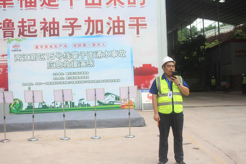 為貫徹習(xí)近平總書(shū)記關(guān)于防災(zāi)減災(zāi)救災(zāi)重要講話指示精神,扎實(shí)開(kāi)展第21個(gè)全國(guó)“安全生產(chǎn)月”活動(dòng),提升在建工程單位救災(zāi)應(yīng)急處置能力,6月16日下午,重慶兩江新區(qū)在中鐵十一局五公司軌道交通15號(hào)線二期土建18標(biāo)項(xiàng)目歡樂(lè)谷站施工現(xiàn)場(chǎng)舉行掌子面涌水事故應(yīng)急演練。