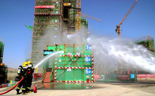 本次演練模擬高空墜落、物體打擊、消防應(yīng)急演練三個部分。演練事故發(fā)生后,該項目部第一時間啟動應(yīng)急預(yù)案,迅速組織人員疏散,各應(yīng)急救援小組在接到命令后,立即攜帶應(yīng)急救援物資趕赴現(xiàn)場,各司其責、明確分工、緊密配合,迅速有效控制現(xiàn)場,防止和避免事態(tài)蔓延擴大。經(jīng)過搶險救援,現(xiàn)場被困人員全部脫困,傷者被及時送往醫(yī)院救治,演練模擬火災(zāi)經(jīng)過自救和消防隊的支援也被撲滅。演練過程中全體參演人員精神飽滿,協(xié)調(diào)有序,演練震撼有力,逼真展現(xiàn)了事故上報、預(yù)案啟動、現(xiàn)場搶險、聯(lián)動救援、安全警戒、事故調(diào)查等應(yīng)急救援流程和工作環(huán)節(jié),達到了檢驗預(yù)案、鍛煉隊伍的目的。此次演練結(jié)合項目建筑工程特點和施工實際,具有較強的針對性和實用性,得到各觀摩單位一致好評。