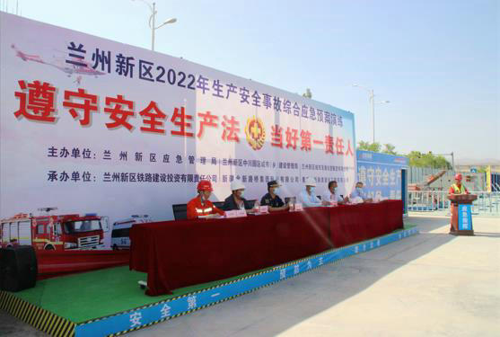 為進一步夯實安全生產(chǎn)責任,增強突發(fā)應(yīng)急事故處置能力,有效提升安全管理水平,6月19日,北新路橋集團西安分公司蘭州新區(qū)項目部組織開展2022年“安全生產(chǎn)月”綜合應(yīng)急救援演練活動。蘭州新區(qū)行業(yè)主管部門應(yīng)急管理局、建設(shè)管理局及區(qū)消防救援支隊,建設(shè)方城投集團、鐵投公司相關(guān)領(lǐng)導(dǎo)觀摩指導(dǎo)。