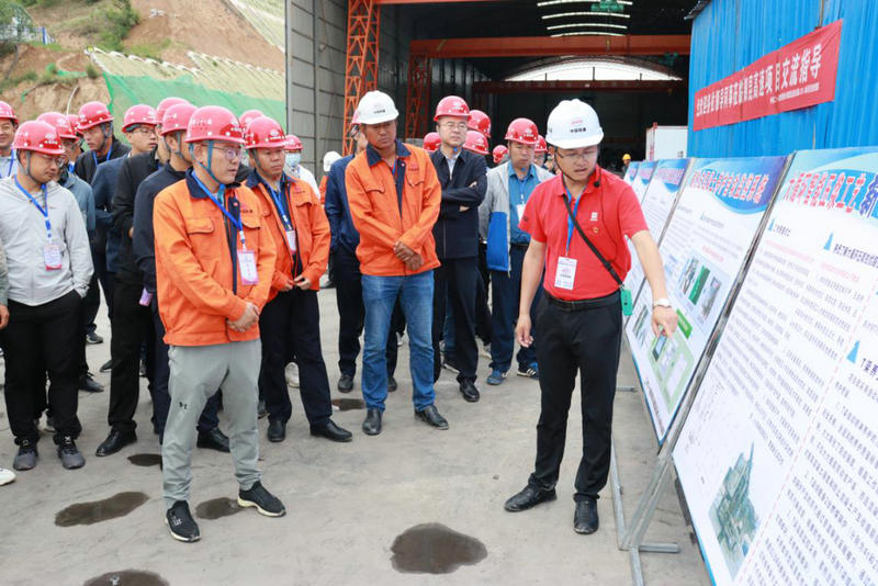 當(dāng)天上午,觀摩組一行來到由中鐵二十一局四公司承建的銀昆高速公路任灣茹河特大橋施工現(xiàn)場進行參觀。項目副經(jīng)理兼總工程師介紹了任灣茹河特大橋的工程概況,針對懸臂施工橋梁支架及掛籃預(yù)壓裝置、組合式高速公路T梁吊梁防護裝置、連續(xù)梁豎向預(yù)應(yīng)力精軋螺紋鋼螺母緊固專業(yè)裝置等創(chuàng)新工藝工法進行了詳細介紹,并對施工過程中采用的懸臂模板施工工藝、液壓爬模施工工藝、大體積混凝土溫度監(jiān)控系統(tǒng)、螺旋牛腿施工工藝等十一項工藝工法進行了詳細講解。其中連續(xù)鋼構(gòu)橋梁螺旋牛腿施工工藝是由集團公司研發(fā),在銀昆高速公路項目首次應(yīng)用,并成功取得了國家實用新型專利知識產(chǎn)權(quán),該項工藝的實施可節(jié)約鋼材45%,節(jié)約施工時間78%,并實現(xiàn)100%的材料重復(fù)利用率,避免了常規(guī)預(yù)埋支架體系對材料的浪費。觀摩組一行還在任灣茹河特大橋12號墩現(xiàn)場參觀了該工程的施工工藝和創(chuàng)新成果,在VR安全體驗館進行了實地體驗。