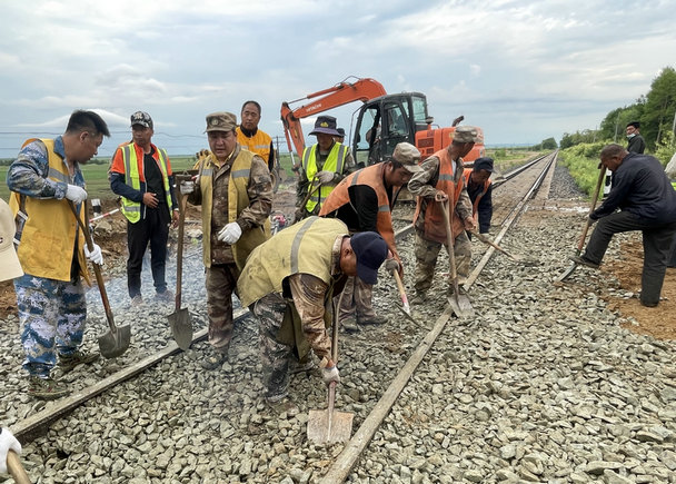 連日來,黑龍江省黑河市境內(nèi)雨水頻繁,受持續(xù)強降雨影響,6月23日下午,北黑鐵路錦河至西崗子區(qū)間K261+600地段突發(fā)洪水30米路基被沖毀,行車受到影響。緊急時刻,正在附近施工的中鐵二十三局集團北黑鐵路項目部迅速啟動應(yīng)急預(yù)案,項目書記張志軍帶領(lǐng)20余名搶險員、3臺挖掘機、2臺裝載機和5輛自卸車及其他搶險車輛,冒雨出發(fā)僅用10分鐘便趕赴水害地段。按照黑龍江省黑河鐵路集團有限責(zé)任公司安排,接受任務(wù)后,迅速展開搶險施工。