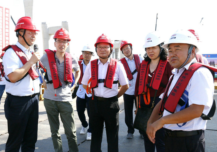 在杭甬項目濱海互通施工現(xiàn)場,葉昌勇處長查看了濱?;ネˋ匝道正在施工的承臺、墩身情況,聽取了公司副總經(jīng)理兼杭甬項目負責人黃偉關(guān)于濱?;ネüこ谈艣r、施工進度、安全質(zhì)量、面臨的施工難題、隊伍建設(shè)等方面的情況介紹和下一步重點突破的鋼箱梁生產(chǎn)和架梁節(jié)點。葉昌勇對該項目在安全、質(zhì)量、環(huán)保等方面取得的成績表示贊賞。他強調(diào):濱?;ネㄊ莵喼拮畲蟮暮I匣ネ屑~,是浙江省、寧波市的重點工程,質(zhì)量要求高、安全風險大,面臨的困難多,十五局團隊能干成現(xiàn)在這樣,不容易,希望你們后期要加快施工進度,錨定任務(wù)目標,確保完成各個節(jié)點。目前正是高溫季節(jié),紫外線很強,要做好暑天員工的安全防護工作,海上建橋,每天要跟金屬打交道,要穿長袖工作服、戴安全防護手套,避免燙傷皮膚。同時,要做好防暑降溫工作,要多多關(guān)愛員工,讓他們吃好、睡好、上班精力充沛,不走神。其次,要高度重視高墩裝、拆模工序,作業(yè)人員要拴好保險繩,不能怕麻煩,麻痹大意容易引發(fā)安全事故。