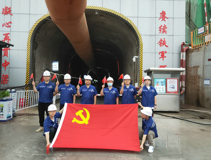 在中梁山隧道進(jìn)口,項(xiàng)目部全體黨員擁簇在鮮紅的黨旗下,大家背后的中梁山隧道施工通道轉(zhuǎn)入正線施工后,出口也隨即洞內(nèi)開挖,盾構(gòu)始發(fā)井已清理場(chǎng)區(qū),開工在即。“今天的黨旗格外鮮艷,項(xiàng)目部推行的黨員先鋒崗夜查、分片包干責(zé)任區(qū)等系列活動(dòng),充分展示了黨員的先進(jìn)性,我驕傲,我是一名黨員”。副經(jīng)理宋利向黨支部書記何偉表述的心里話,把全體黨員的心凝聚的更加緊密。