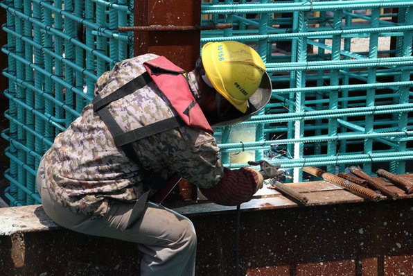 隨著濱海高架全長290米連續(xù)梁的開工建設(shè),幾千噸鋼筋的運輸任務(wù)壓在了崔清祥的肩上,他一邊組織員工加工鋼筋籠,一邊調(diào)集車輛,將商家運至大臨的鋼筋轉(zhuǎn)運到施工現(xiàn)場,供兩家施工隊使用。一車車鋼筋運到棧橋的作業(yè)平臺上,需要足夠的場地,一些堆積的鋼板等雜物應(yīng)該由施工隊清理掉,騰出儲存鋼筋空間,由于協(xié)商不和諧,他寧可自己安排人清理掉也不愿與“兄弟單位”鬧矛盾,始終以大局為重,吃點虧沒啥,與多家施工隊和睦相處。