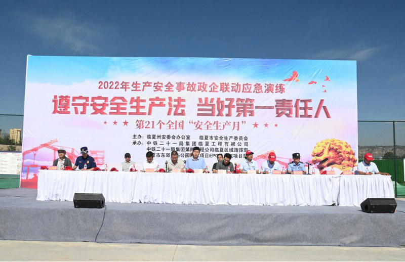 6月29日,由臨夏州安委會(huì)辦公室、臨夏市安委會(huì)主辦,中鐵二十一局臨夏工程公司、四公司臨夏區(qū)域指揮部、臨夏市東郊生態(tài)公園建設(shè)項(xiàng)目EPC總承包項(xiàng)目部聯(lián)合承辦的2022年生產(chǎn)安全事故政企聯(lián)動(dòng)應(yīng)急演練活動(dòng)在臨夏市東郊生態(tài)公園建設(shè)項(xiàng)目EPC總承包項(xiàng)目施工現(xiàn)場(chǎng)如期展開(kāi)。