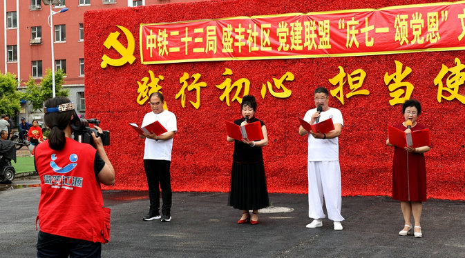 “我愛你中國,你是我生命最激情的火,五星紅旗是我永遠的顏色,當我寫下這兩個字的時候,我的心里就有一個夢.......”7月1日,一首激昂高亢、鏗鏘有力的女高音獨唱《我愛你中國》,拉開了中鐵二十三局、盛豐社區(qū)“慶七一·頌黨恩”文藝演出序幕,為黨的生日送上真誠的祝福。