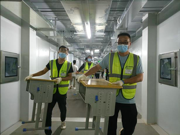 在接收到屬地方艙醫(yī)院人手“告急”的消息后,該項(xiàng)目迅速集結(jié)黨員青年志愿者趕赴現(xiàn)場(chǎng),主動(dòng)配合、積極作為、分工協(xié)作,搬運(yùn)桌椅、清理垃圾、掃地拖地……。在大家的通力協(xié)作下,“戰(zhàn)斗”一直持續(xù)一天,圓滿完成了方艙醫(yī)院兩層200多個(gè)房間的清掃整理任務(wù)。