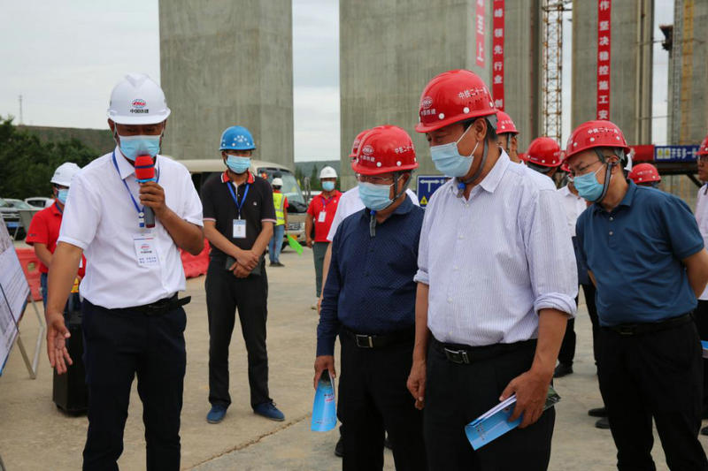 在銀昆高速公路2標任灣茹河特大橋施工現(xiàn)場,劉汝臣通過聽取項目介紹、實地察看、現(xiàn)場交流等,實地了解施工進展情況,對項目施工過程中所采取的新工藝工法表示肯定。