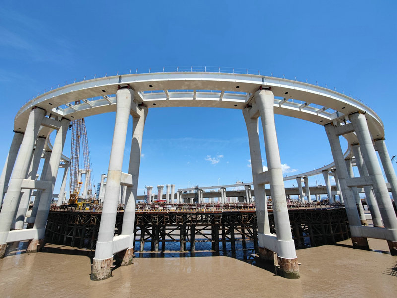 由鐵道兵5師22團(tuán)演變過來的中鐵十五局集團(tuán)二公司,在浙江省重點(diǎn)建設(shè)項(xiàng)目—浙江杭(州)甬(寧波)一期高速公路全長(zhǎng)14.6公里、總投資21.547億元的濱海高架和亞洲最大的海上立交—濱?;ネ屑~項(xiàng)目建設(shè)中,充分發(fā)揮“特別能吃苦、特別能戰(zhàn)斗、特別能奉獻(xiàn)”的鐵道兵精神,以科技為先導(dǎo),敢于挑戰(zhàn)不可能,攻克多道難關(guān),插入海底直徑1.8米—2.5米、平均98米長(zhǎng)的鋼護(hù)筒1739根,樁基、墩身施工3次成功下穿著名的金塘大橋;安全通過海底盾構(gòu)、直徑4.5米的輸油管道等17條管線;811座6.8米—25.5米的橋墩完成70%;濱海高架主體工程順利完工,濱?;ネ芰?0片,施工安全質(zhì)量、進(jìn)度環(huán)保在業(yè)主、省市交通等部門歷次檢查中,均受到好評(píng),被浙江省交通工程管理中心評(píng)為2021年平安工地省級(jí)示范合同段,榮獲寧波市交通局授予的2020年、2021年平安工地示范合同段稱號(hào),今年五四前夕,榮獲共青團(tuán)寧波市委交通運(yùn)輸2022年度青年文明號(hào)稱號(hào)。