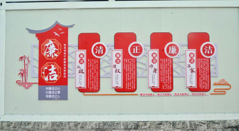 為充分發(fā)揮陣地建設(shè)在廉潔文化傳播中的重要作用,該項(xiàng)目黨支部結(jié)合實(shí)際,制作廉潔海報(bào)、廉言警句、廉政教育宣傳欄,在項(xiàng)目部辦公區(qū)、施工現(xiàn)場(chǎng)等曝光度較高區(qū)域張貼,以圖文并茂形式打造宣傳教育“文化墻”,不斷擴(kuò)大廉潔文化的影響力和覆蓋面,營(yíng)造濃厚的廉潔文化氛圍。潛移默化地引導(dǎo)黨員干部職工時(shí)刻警醒己身,知敬畏、存戒懼、守底線,堅(jiān)持按規(guī)矩用權(quán)辦事,切實(shí)維護(hù)風(fēng)清氣正、陽(yáng)光透明的工作環(huán)境。