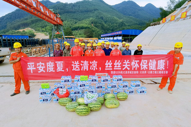 國道G235線尤溪西城至新陽公路工程三期項(xiàng)目黨支部,聯(lián)合工會小組提前安排部署,結(jié)合崗前培訓(xùn)、班前教育,廣泛宣傳高溫天氣防暑降溫知識;由黨員干部帶隊(duì),對沿線14公里作業(yè)面的工人們送去西瓜、礦泉水、人丹、藿香正氣液、清涼油等防暑降溫食(藥)品、飲品,要求各班組負(fù)責(zé)人嚴(yán)格遵守項(xiàng)目部下發(fā)的防暑降溫具體措施,切實(shí)保障一線建設(shè)者的健康安全。