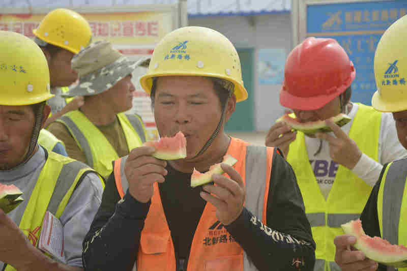 7月27日上午,第三師圖木舒克市總工會(huì)赴北新路橋集團(tuán)圖昆公路(三師段)一標(biāo)項(xiàng)目部建設(shè)一線,開展“盛夏送清涼、關(guān)愛在一線”慰問活動(dòng),三師總工會(huì)黨組書記、主席張娟,三師總醫(yī)院醫(yī)護(hù)人員、代建指揮部和項(xiàng)目人員等出席活動(dòng)。