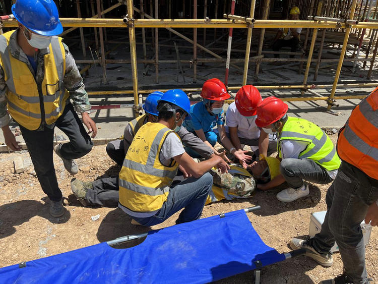 為進一步提升項目參建人員對高處墜落傷害的應(yīng)變和應(yīng)急救援能力,7月25日,中鐵二十一局四公司南川工業(yè)園區(qū)九年一貫制學校建設(shè)項目邀請青海仁濟醫(yī)院急救醫(yī)護人員、監(jiān)理公司總監(jiān)在施工現(xiàn)場開展高處墜落應(yīng)急救援演練。