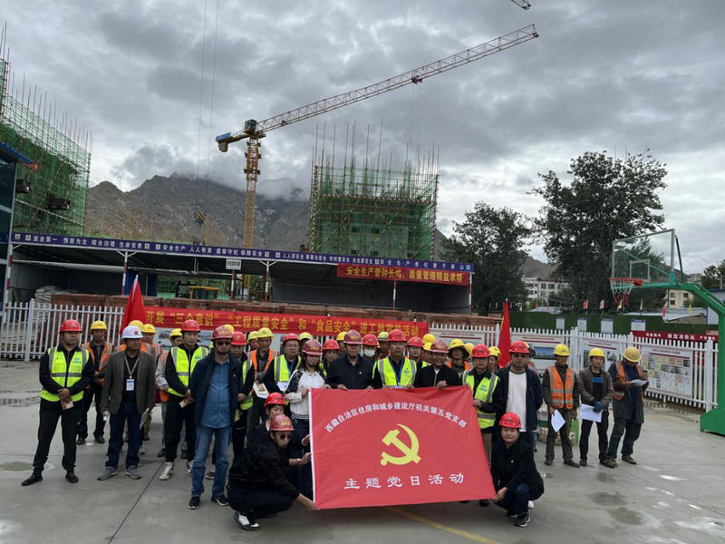 8月3日上午,西藏自治區(qū)住房和城鄉(xiāng)建設(shè)廳機關(guān)第五黨支部到中鐵二十一局四公司周轉(zhuǎn)房項目開展“三個意識、工程質(zhì)量安全”進工地宣傳主題黨日活動。