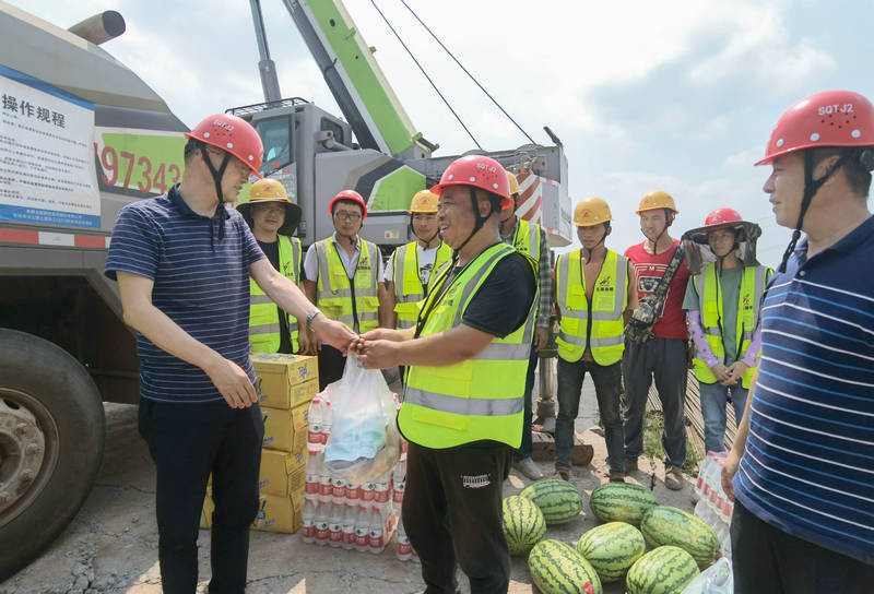 重慶訊(通訊員 單飛龍)炎炎酷暑送清涼、舉手投足顯關(guān)懷。8月5日上午,重慶雙錢高速土建二標(biāo)項目經(jīng)理李東寶代表項目部,深入施工項目現(xiàn)場及班組生活駐地,開展“夏送清涼”慰問一線活動,并為他們送去了冰糖、菊花、礦泉水、冰紅茶、西瓜及藿香正氣液等防暑降溫物品,用清涼和關(guān)懷傳遞為項目建設(shè)者們服務(wù)的真情,用行動向新時代“工匠人”精神致敬。
