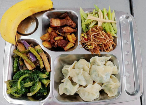 (西安訊)雞肉、魚肉、排骨……除過這些常見的主食陪著時(shí)令蔬菜外,搭配著新鮮牛奶,各式各樣時(shí)令瓜果的食堂引來了職工們的關(guān)注。