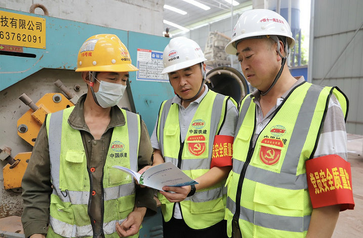 17標(biāo)“黨員安全質(zhì)量監(jiān)督崗”在現(xiàn)場排查安全質(zhì)量