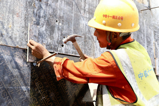 工人專心作業(yè),顧不上汗水從鼻尖滑落