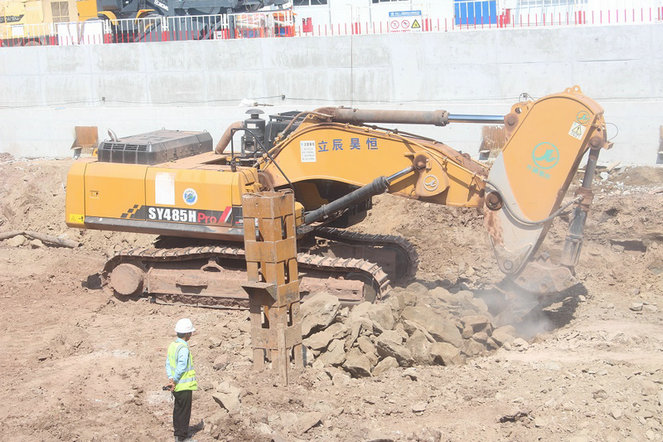 挖掘機(jī)司機(jī)在熱氣蒸騰的駕駛室里堅(jiān)守基坑開挖不停歇