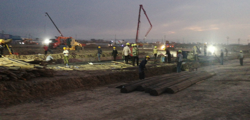 為確保施工進(jìn)度,他們按照優(yōu)先接入、優(yōu)先放行、優(yōu)先編掛、優(yōu)先對(duì)位“四優(yōu)先”原則,優(yōu)化施工調(diào)度、勘察設(shè)計(jì)、施工排布、對(duì)接上級(jí)及兄弟單位等各作業(yè)環(huán)節(jié)緊密銜接,最大限度壓縮設(shè)備和人員非作業(yè)停留時(shí)間,加快人員和設(shè)備周轉(zhuǎn),全力保障建筑材料運(yùn)輸供應(yīng)。另外,他們還根據(jù)現(xiàn)場情況不斷細(xì)化施工方案,設(shè)計(jì)、施工、優(yōu)化三管齊下,調(diào)動(dòng)管理人員16人,工人114人,灑水車1臺(tái),挖掘機(jī)3臺(tái),裝載機(jī)1臺(tái),渣土車3輛,平地機(jī)1臺(tái),壓路機(jī)1臺(tái),發(fā)電機(jī)3臺(tái),鋼筋彎曲機(jī)1臺(tái),鋼筋切斷機(jī)一臺(tái)有序推進(jìn)工程建設(shè)。他們采取管理人員兩班倒、勞務(wù)工人三班倒、24小時(shí)不間斷作業(yè)等方式,鉚足勁晝夜奮戰(zhàn)在施工一線,爭分奪秒、搶抓進(jìn)度,有力保障了疫情防控臨時(shí)防疫設(shè)施點(diǎn)的建設(shè)進(jìn)度。截止目前,方倉集成房已進(jìn)場60間,彩板房32間;鋼筋進(jìn)場138.69t,混凝土進(jìn)場221m³,現(xiàn)辦公桌椅,宿舍被褥、防疫物資等相關(guān)物品已到位,管理人員已具備辦公條件和住宿條件,現(xiàn)場鋼筋加工廠正在加工制作,基礎(chǔ)槽已具備綁鋼筋條件,已形成流水作業(yè)?;炷烈讶雸觯?號(hào)艙混凝土已澆筑完成。