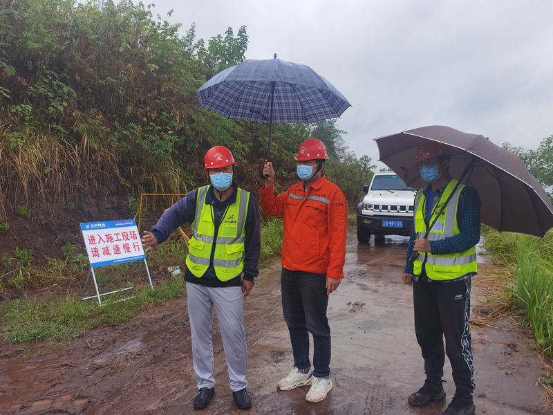 在K9+148涵洞施工現(xiàn)場(chǎng),防汛領(lǐng)導(dǎo)小組要求施工單位務(wù)必做到五個(gè)“落實(shí)”:一要落實(shí)好施工隊(duì)帶班巡查、防汛預(yù)案及各項(xiàng)應(yīng)急處置工作;二要落實(shí)好現(xiàn)場(chǎng)圍擋、防護(hù)用具等臨時(shí)設(shè)施的抗雨措施,必要時(shí)疏散工地現(xiàn)場(chǎng)人員,并設(shè)置警戒標(biāo)志;三要落實(shí)好施工作業(yè)面防坍塌措施,做好所轄標(biāo)段的防汛排水設(shè)施;四要落實(shí)好機(jī)械設(shè)備和外腳架的檢查加固工作;五要落實(shí)好場(chǎng)內(nèi)材料堆放防傾倒、墜落措施,做好高墜物的防護(hù)措施。