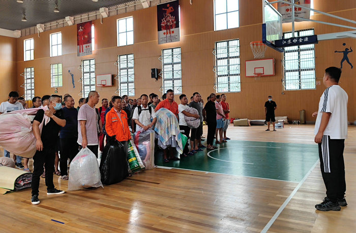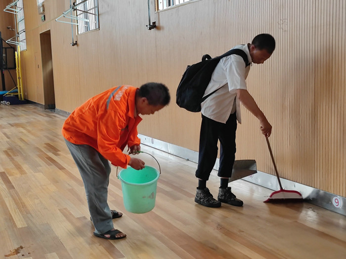 9月5日下午3點,根據(jù)臺風“軒嵐諾”強度逐漸減弱,對員工生命安全不再構成威脅的實際,安置在鎮(zhèn)海澥浦中學體育館的十五局杭甬項目部施工人員要離開這里。臨行前,他們各自收拾好行李,將個人遺留在地板上的垃圾拾到紙箱里,集中處理。待收拾妥當,員工們有序地排成隊,依次走出大門,上了等候在院內的車輛,返回駐地。體育館大廳里還有一些廢紙碎屑沒清理干凈,王繼劍安排5名員工認真仔細地進行地毯式的清掃,包括每個角落都打掃得干干凈凈,就像沒來過一般。