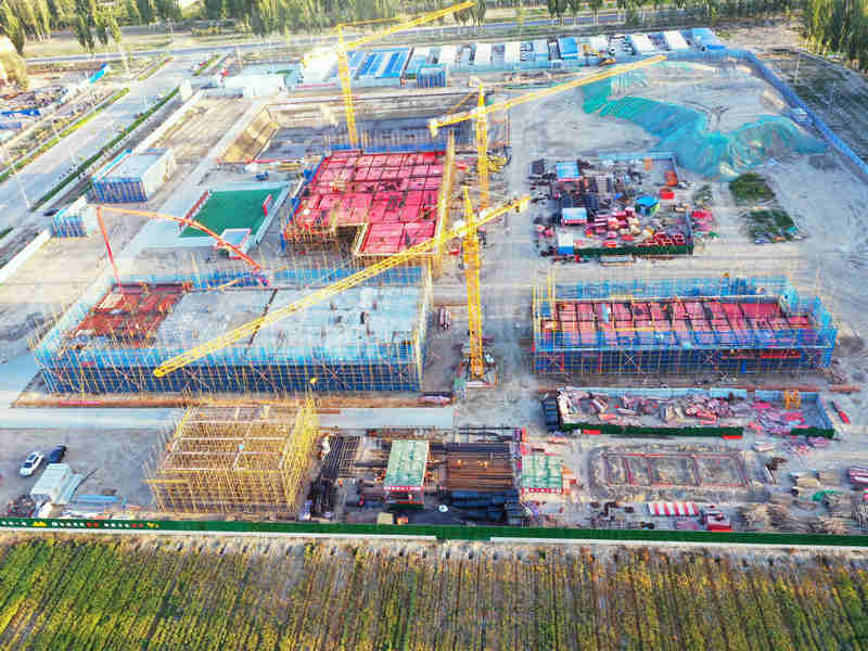 中鐵二十一局承建兵團南疆救治基地建設(shè)項目為專科傳染病醫(yī)療用房,急床位數(shù)129張(含ICU13床),內(nèi)部功能包括門診、醫(yī)技檢查、手術(shù)、病房、后勤保障等,共有單體建筑10棟。項目總建筑面積17775.58平方米,地上建筑面積16025.32平方米,地下1750.26平方米。該工程2022年6月30日開工,計劃2023年5月31日完工,工期緊、任務(wù)重、房建施工工序多,為更好更快地兌現(xiàn)工期要求,項目部多措并舉推進施工。為確保施工進度,項目明確目標(biāo)、分解任務(wù)、落實責(zé)任,將任務(wù)目標(biāo)分解到每周、每日,開展勞動競賽,掀起施工大干高潮;為確保施工有序,項目部細化工序,從基坑開挖、獨立基礎(chǔ)、首層梁、二層梁板柱、頂層梁板柱等,做到銜接有序、快速施工;在疫情防控常態(tài)化形勢下,為確保物資順利進場,項目部及時跟蹤車輛人員信息,提前聯(lián)系社區(qū)、卡點,確保車輛順利通過,并通過與社區(qū)協(xié)調(diào)溝通,在施工現(xiàn)場開展每日核酸檢測采樣工作,既節(jié)約時間,又保障參建人員身體健康。