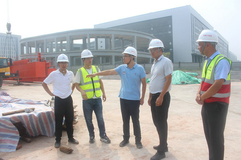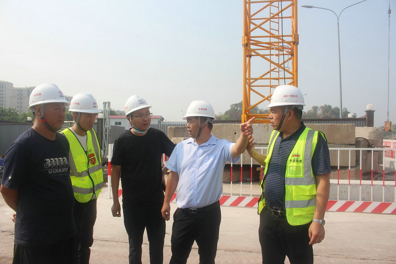 總承包部副指揮長(zhǎng)兼總工程師楊振(右3)在16標(biāo)盾構(gòu)井始發(fā)現(xiàn)場(chǎng)巡查