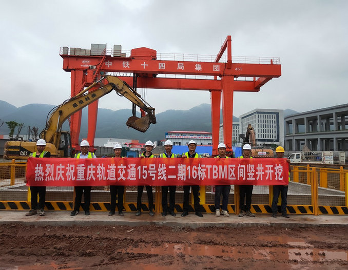 夏季高溫基礎(chǔ)打,秋季涼爽始開挖。9月21日11時28分,一陣破碎錘的聲響,宣布了重慶軌道交通15號線二期16標物流園北站-井口站TBM區(qū)間豎井開挖正式啟動,也標志著該標段盾構(gòu)區(qū)間正式進入主體施工階段。