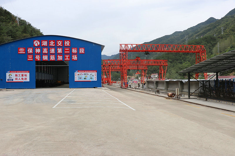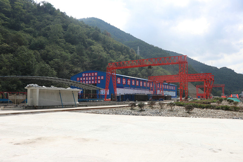 在“地?zé)o三尺平”的湖北省保康縣,要從施工線上找到一塊可以制梁、存粱的地段實屬不易。項目部對梁場選址高度重視,不斷優(yōu)化選址方案,綜合考慮地形、運輸、征拆等多方面因素,最終確定在k7+710-k7+960主線路基上進行建設(shè),雖然此段路基南側(cè)靠山,北側(cè)臨水(河道)需要架橋,施工繁瑣,但其地形較為平坦,利于鋼筋加工棚等配套設(shè)施搭建,且緊鄰項目橋梁密集地(高碑3.4.5號橋)并與實驗室、拌合站毗鄰,不僅方便混凝土的輸送,在架梁時還可以縮短運梁距離,大大提高施工效率。