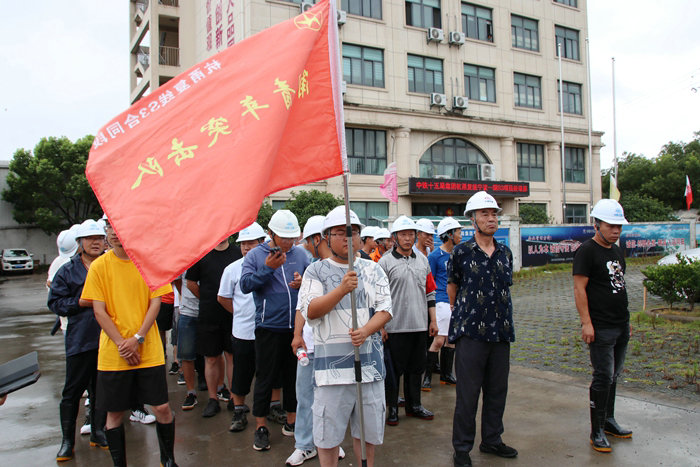 今年9月超強臺風“軒蘭諾”“梅花”襲擊寧波前,項目部廣大黨員身先士卒,沖鋒陷陣,在工地進出口筑起鋼鐵擋墻,加固工地設施,安全轉(zhuǎn)移400名員工。“梅花”離境后,在避災所澥浦中學的103名員工在黨員的帶動下,有序撤離,并將居住過的體育館場地打掃得干干凈凈,寧波日報以《撤離后,他們留下整潔和文明》報道了撤場全過程,在寧波當?shù)匾饛娏曳错憽?/span>