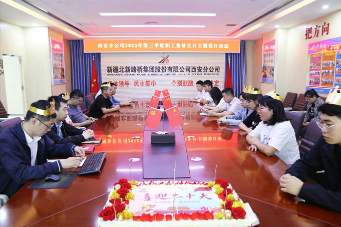 在黨的二十大即將召開(kāi)之際,為慶祝中華人民共和國(guó)73華誕,團(tuán)結(jié)凝聚廣大職工聽(tīng)黨話、跟黨走。9月30日,北新路橋集團(tuán)西安分公司機(jī)關(guān)黨支部開(kāi)展“喜迎二十大 永遠(yuǎn)跟黨走 奮進(jìn)新征程”職工集體生日主題黨日活動(dòng)。