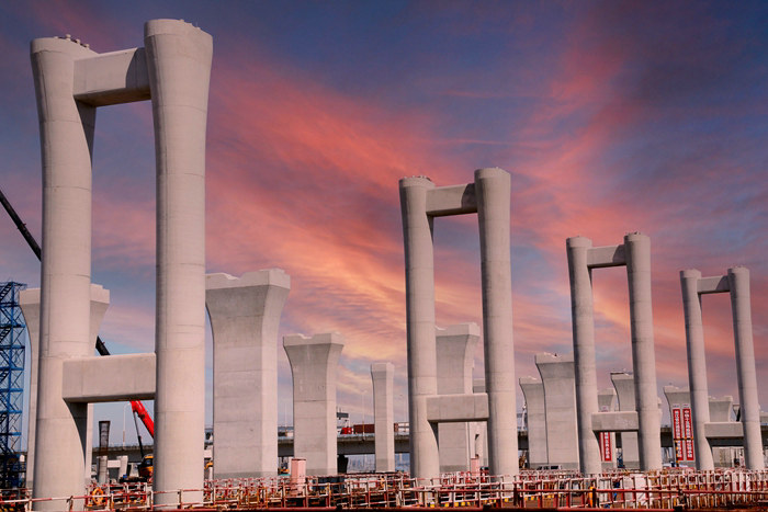 濱?;ネ˙、C匝道墩柱的全面完工,10月8架梁計劃將如期實施。