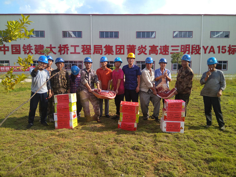 莆炎YA15標(biāo)開展“迎中秋、慶國慶”送溫暖活動。項(xiàng)目部領(lǐng)導(dǎo)帶領(lǐng)辦公室、安質(zhì)部人員分別對項(xiàng)目部所屬各施工隊(duì)生產(chǎn)一線人員進(jìn)行走訪慰問,為一線工人每人送去一盒月餅,為食堂送去豬肉、米面等節(jié)日用品,讓他們歡度一個安全喜慶、愉快和諧的國慶、中秋佳節(jié)。項(xiàng)目此次送溫暖活動共走訪8個施工隊(duì),給工人們送去了香甜的中秋月餅200余盒,豬肉500余斤,并為他們送上一份關(guān)心和溫馨祝福。