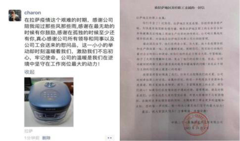 10月5日起,家在不同地方的拉薩地區(qū)45名封控職工家屬陸續(xù)收到了中鐵二十一局四公司工會為他們郵寄的慰問品。