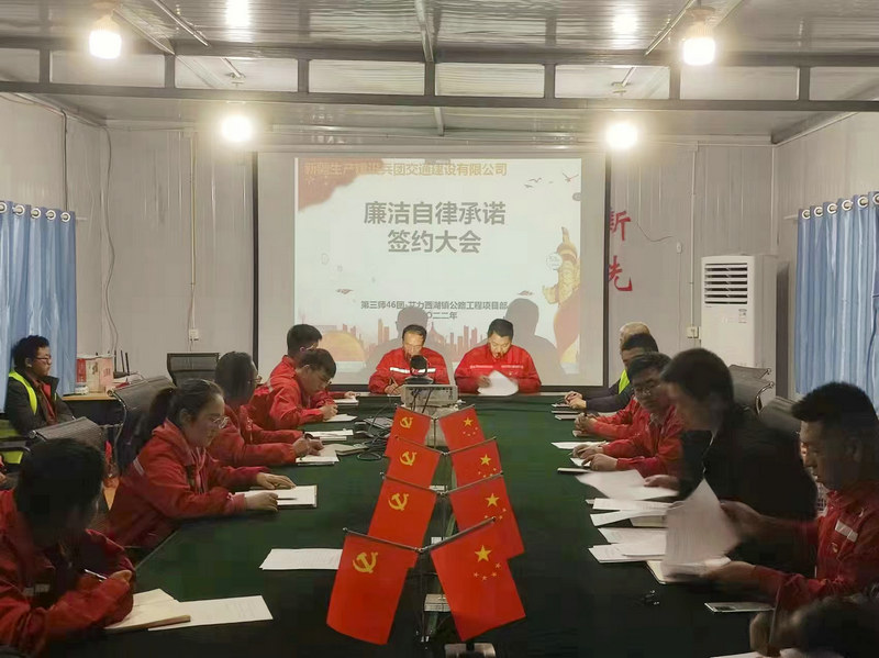 莎車縣(通訊員 吳玉梅 臧明超)“國無廉不安,企無廉不興”風(fēng)清氣正的良好環(huán)境是一個企業(yè)、項目可持續(xù)發(fā)展的必要條件。今年以來,兵團交建第三師46團—艾力西湖鎮(zhèn)公路項目認真貫徹落實公司黨委紀委關(guān)于黨風(fēng)廉政建設(shè)和反腐敗工作的總體部署,緊緊圍繞項目中心任務(wù),創(chuàng)新思路,勇于突破,通過建機制、常教育、抓督察、嚴追責、強隊伍等多項措施打好廉政建設(shè)的組合拳,有力推動了黨風(fēng)廉政建設(shè)工作持續(xù)深入開展,整個項目部形成了風(fēng)清、氣正、人和的良好廉潔氛圍。