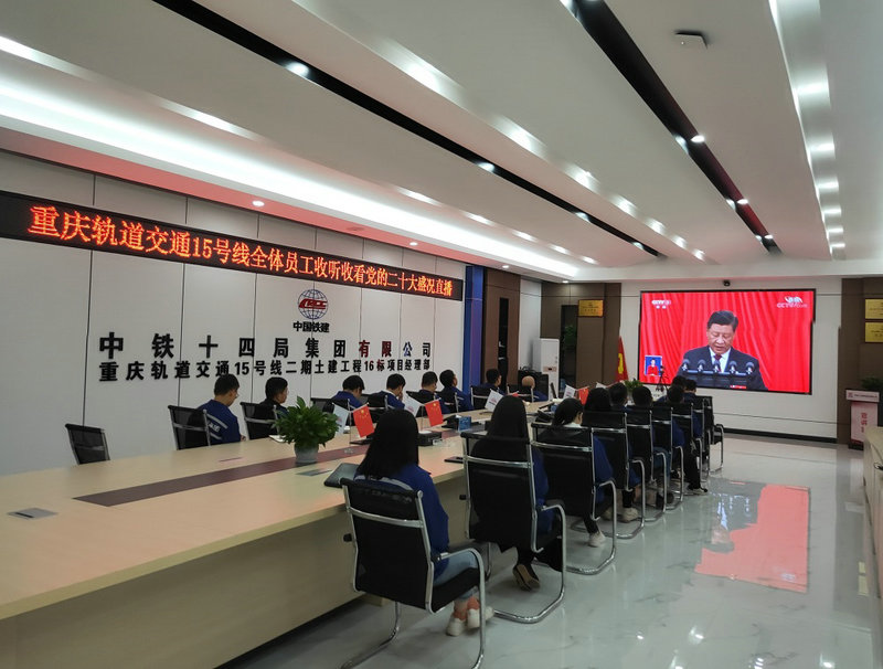 10月16日上午,中國鐵建重慶投資集團(tuán)軌道交通15號(hào)線二期總承包部及所屬各標(biāo)段項(xiàng)目部采取線上線下,集中分散相結(jié)合的方法,收看中國共產(chǎn)黨第二十次全國代表大會(huì)開幕式直播,認(rèn)真聆聽習(xí)近平總書記代表第十九屆中央委會(huì)作報(bào)告。會(huì)后,召開了座談會(huì),話感悟,談體會(huì)。