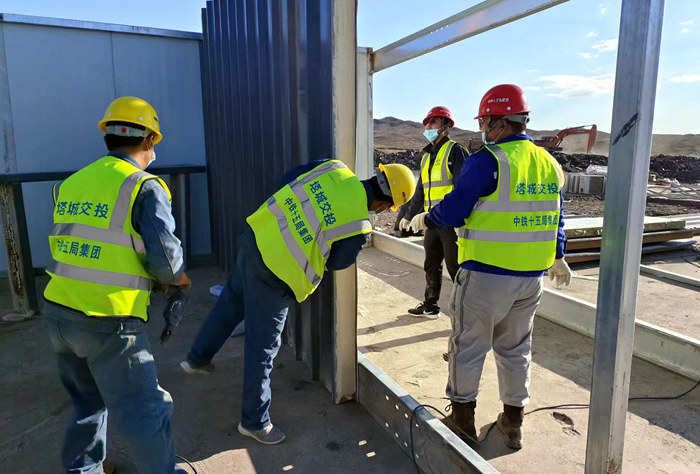 達(dá)爾布特防疫檢查站地理位置險(xiǎn)要,建成對(duì)塔城地區(qū)防疫實(shí)施意義重大。建設(shè)期間,塔城地區(qū)地委行署領(lǐng)導(dǎo)曾多次帶隊(duì)趕往現(xiàn)場(chǎng)檢查現(xiàn)場(chǎng)進(jìn)展,數(shù)十小時(shí)的晝夜鏖戰(zhàn)并沒(méi)有消磨援建人員的意志,反而使他們?cè)綉?zhàn)越勇。“感謝中鐵十五局的援建,在這樣條件艱苦、壓力巨大的情況下,你們團(tuán)結(jié)一心、挺身逆行的精神我們?nèi)侨嗣穸紩?huì)銘記。”10月11日下午,在檢查醫(yī)護(hù)人員住所時(shí),塔城地區(qū)地委行署副專員托里肯感動(dòng)地說(shuō)道。