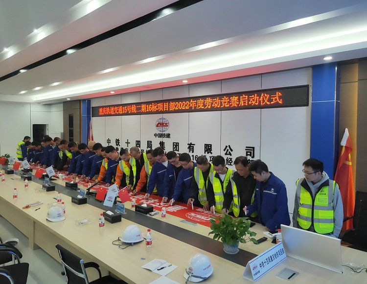 11月1日,中國鐵建重慶投資集團軌道交通15號線二期總承包部16標14局項目部召開“奮戰(zhàn)60天,決勝2022年”勞動競賽啟動儀式推進會,項目部副部長及以上人員和各工區(qū)代表40余人參加。