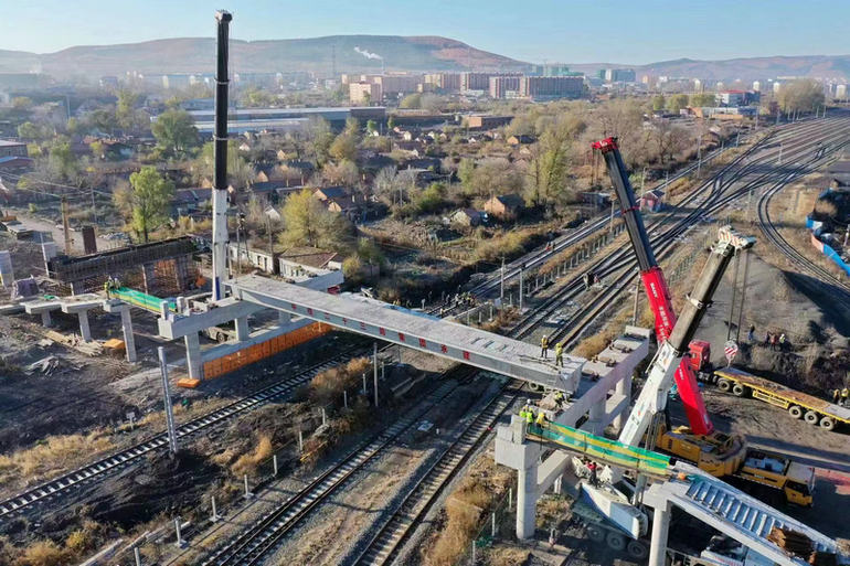 雞西市恒山線K11公鐵立交橋開啟架梁施工序幕