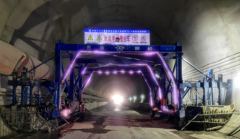 中鐵二十三局沈白高鐵項(xiàng)目部承建的沈白高鐵吉林段長青隧道全長11316.08米,是全線第二長大隧道,施工難度大。該項(xiàng)目有針對性地加大對隧道水溝電纜槽的施工組織力度,不斷創(chuàng)新施工方法取得了明顯成效。過去傳統(tǒng)的隧道水溝電纜槽施工采用人工單邊側(cè)模作業(yè)方法,模板由小塊鋼模和木模組合,立模時(shí)需要人工按編號拼裝,模板固定較為困難,且無法一次性組裝成型,耗時(shí)、費(fèi)力、效率低,電纜槽外觀質(zhì)量及線型平整度控制難度較大。為此,在長青隧道進(jìn)口施工前,他們提前與專業(yè)生產(chǎn)廠家聯(lián)系,量身定制了門架式水溝電纜槽液壓臺車,臺車自動走行,且完全行走在水溝電纜槽以外仰拱填充面上,不受任何限制,不影響洞內(nèi)車輛正常通行。同時(shí),水溝電纜槽模板采用液壓式升降定位裝置,實(shí)現(xiàn)了模板的自動定位和脫模,一次澆筑成型。從而收到了簡化工序、節(jié)約人力、降低成本、提高效率、保證質(zhì)量、活完場清的實(shí)實(shí)在在好處。在施工過程中,他們還重點(diǎn)把握測量放線、鑿毛(專用鑿毛機(jī))、鋼筋加工及安裝、基底沖洗、模板安裝及定位、澆筑混凝土、拆模等質(zhì)量卡控要點(diǎn),解決了因養(yǎng)護(hù)不到位產(chǎn)生槽身細(xì)微裂縫、拆模易造成缺棱掉角;水溝電纜槽斷面尺寸過小,橫向?qū)?、排水管安裝困難;完成澆筑后管口位置易跑偏等質(zhì)量通病。“通過我們對施工工藝的優(yōu)化完善,水溝電纜槽施工實(shí)現(xiàn)了設(shè)備走行、空間位置粗調(diào)和精調(diào)自動化,還配置了作業(yè)平臺、輔材和輔助設(shè)備存放箱等,讓施工更加得心應(yīng)手。如今使用臺車3個(gè)人每天可完成水溝電纜槽施工9米,提質(zhì)增效保工期一舉多得”中鐵二十三局沈白高鐵項(xiàng)目部一分部負(fù)責(zé)隧道工程的副經(jīng)理程正法介紹說。