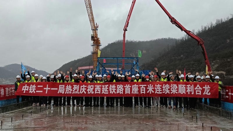 11月11日19時,隨著最后一方混凝土的澆筑完成,經(jīng)過2個多小時的連續(xù)奮戰(zhàn),西(安)延(安)高速鐵路首座跨高速公路百米連續(xù)梁——楊家灣特大橋連續(xù)梁順利合龍,為后續(xù)橋面系和無砟軌道施工奠定了堅實的基礎(chǔ)!