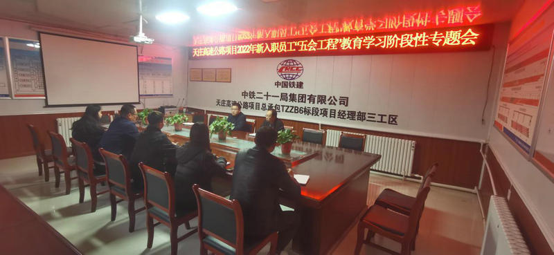 為進(jìn)一步了解新員工入職以來的工作收獲、生活及思想動(dòng)態(tài),傾聽新員工心聲,促進(jìn)更快地成長進(jìn)步,11月11日下午,中鐵二十一局四公司天莊高速公路項(xiàng)目組織召開了2022年新入職員工“五會(huì)工程”階段性學(xué)習(xí)總結(jié)專題會(huì),會(huì)議由項(xiàng)目經(jīng)理主持,三位新員工和各位導(dǎo)師參加。