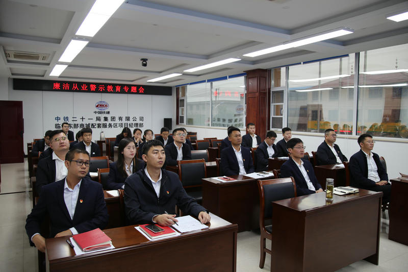 11月12日,為大力弘揚(yáng)“倡廉潔、重法治、行勤儉、樹(shù)清風(fēng)”良好風(fēng)尚,加強(qiáng)項(xiàng)目部廉潔文化建設(shè),引導(dǎo)黨員干部職工堅(jiān)定理想信念,守住拒腐防變的防線,在職工中形成濃厚的廉潔文化氛圍,中鐵二十一局臨沂東部商城配套服務(wù)區(qū)項(xiàng)目黨工委組織全體職工開(kāi)展廉潔從業(yè)警示教育專題會(huì)。
